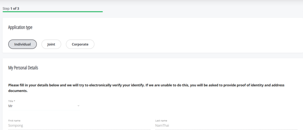 กรอกข้อมูลการลงทะเบียนเปิดบัญชีจริง
