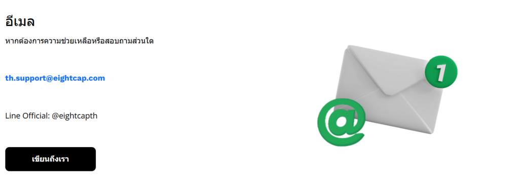 หากท่านใดติดปัญหาในการใช้งานหรือติดปัญหาเรื่องการเปิดบัญชี eightcap สามารถติดต่อ eightcap ได้ที่ email :